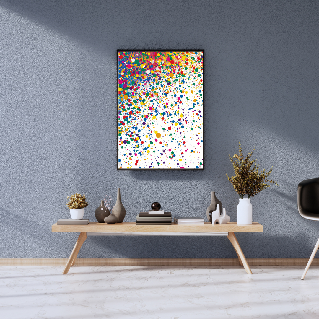 The Color Speck – Multicolored Dot gallery wall set is perfect for anyone looking to add a subtle yet colorful statement to their home or office décor while maintaining a minimalist, modern style.